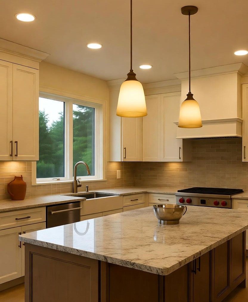 or under-cabinet strips, trending in 2025 for their warm, biophilic-inspired tones. Dimmable fixtures transition from bright prep lighting to soft, festive glows for Christmas parties.